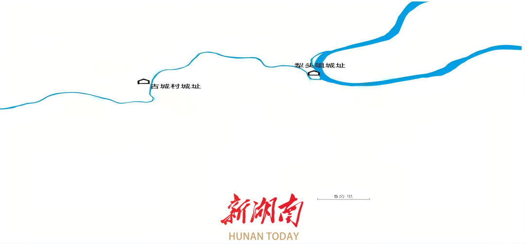 OCR:型头 咀城址 古城村城址 新湖南 5公业 HUNANTODAY