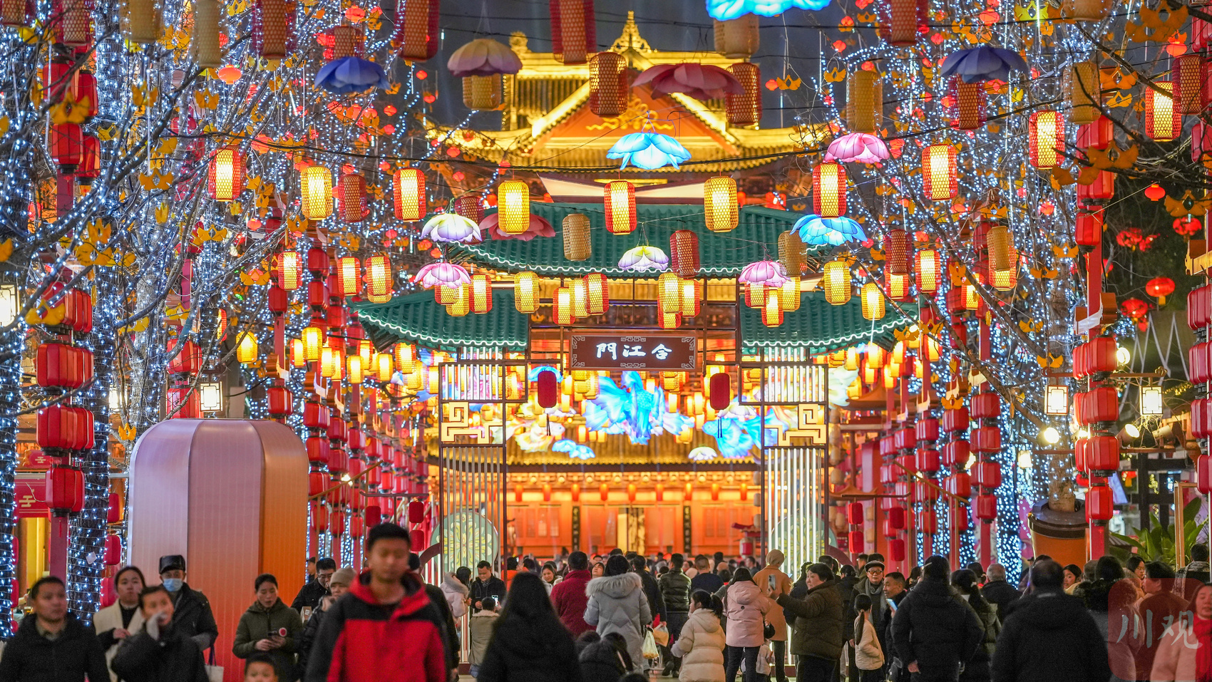 马年新春,总台春晚宜宾分会场年味拉满。2月15日晚,翠屏区冠英古街彩灯错落,游人拍照打卡,烟火气十足。501白酒文化圣地年味更浓,元明活态古窖池旁红灯映照着酒坊,酒香与年味交织相融,成为酒都新春热门打卡地。中山街上,跑马灯流光轮转,行人驻足欢笑,老城区热闹非凡。