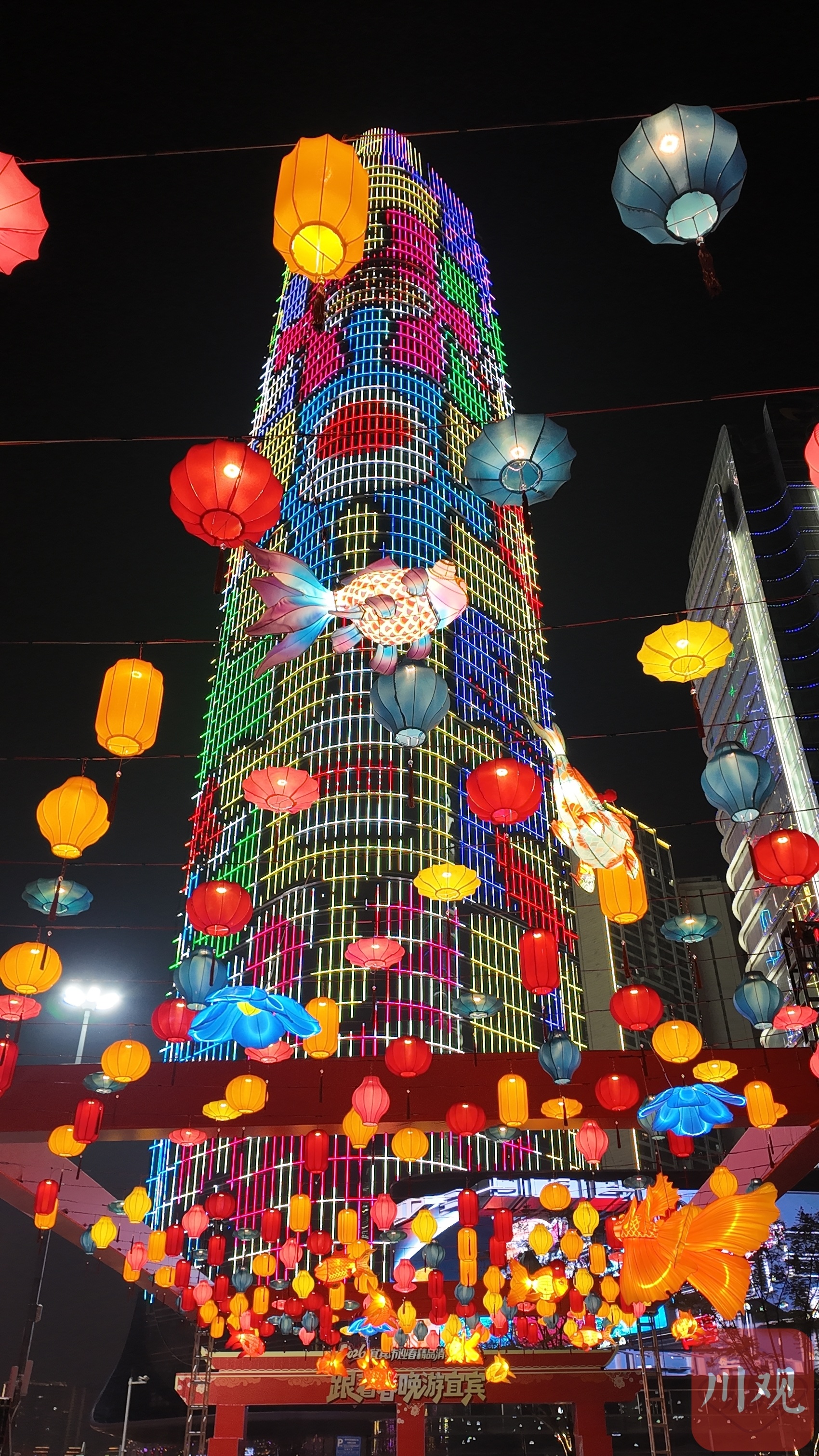 此外,2月16日至3月3日晚,宜宾三江六岸还将上演精彩光影大秀。以无人机编队表演为载体,融合长江文化、酒都风情等本土元素,延续春晚分会场舞美灯光效果,打造春晚同款声光电城市光影秀。