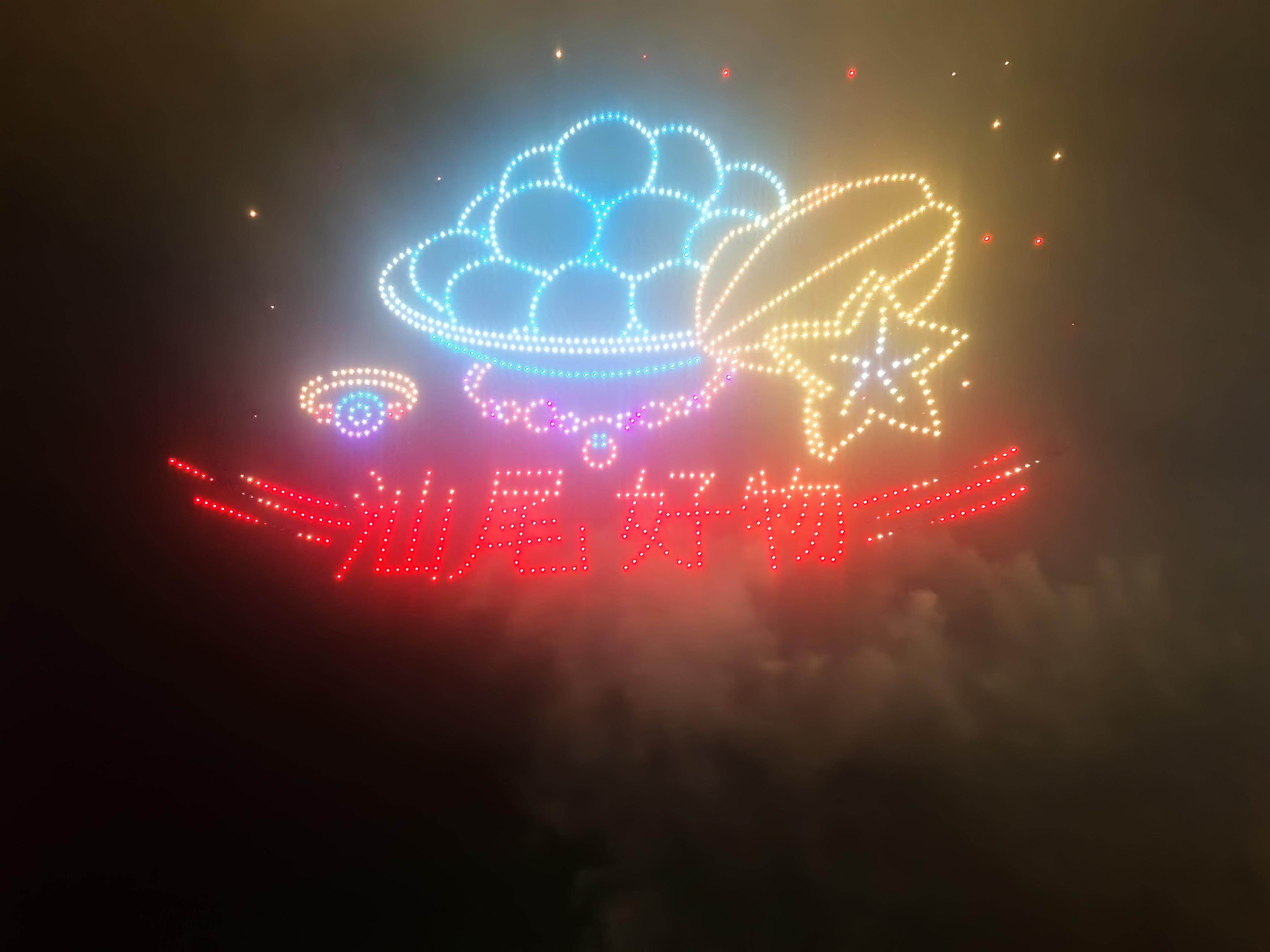 最令人惊艳的,是1300架无人机组成的“空中非遗画卷”。以夜空为幕,灯光为笔,国家级非遗项目依次亮相:正字戏、白字戏、西秦戏三戏同辉,陆丰皮影灵动传神,滚地金龙、甲子英歌舞姿雄健,河田高景、麒麟舞纳福迎祥,汕尾渔歌婉转回荡。光影流转间,传统文化与现代科技碰撞交融,让非遗从戏台走向天幕,可看可感、可亲可近。