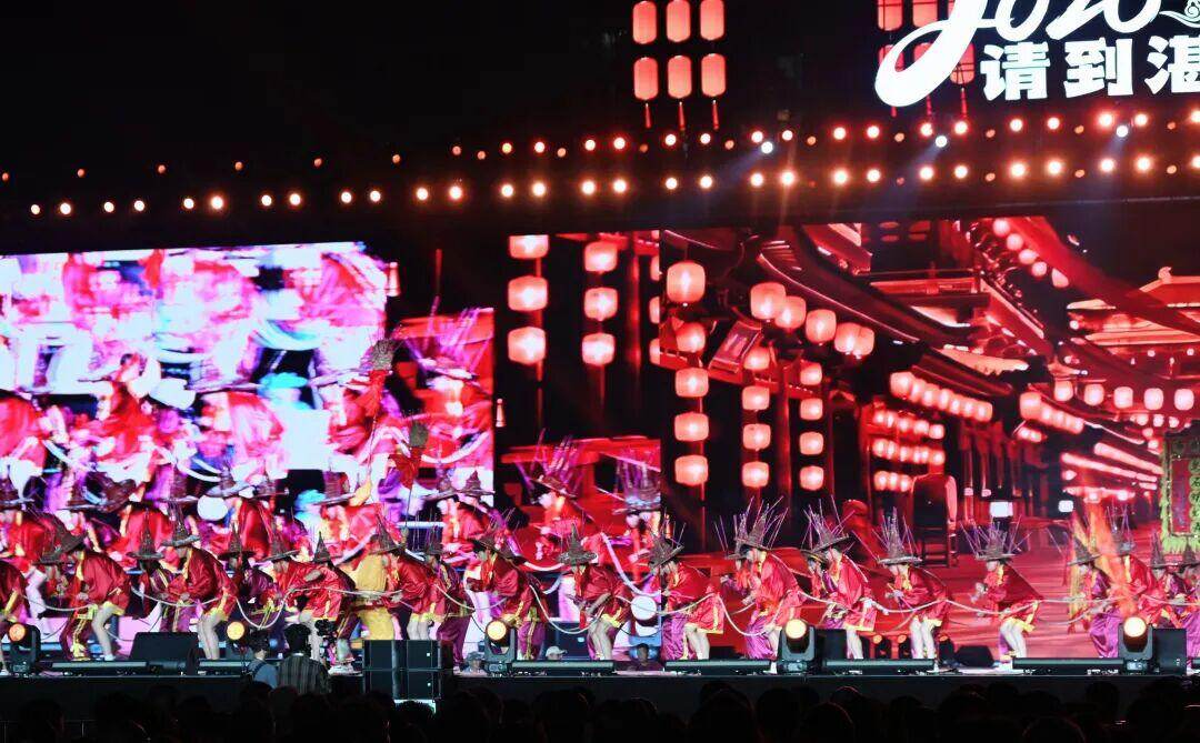 非遗方阵火热开场后,《换鼓谣》以恢弘之势震撼开幕,再现“天下四绝”之首的祭雷仪典。63米超大冰屏配合沉浸式舞台,“天地铸魂”、“风和雨润”、“龙马奔腾”三大篇章依序展开,各具特色的非遗项目轮番亮相。由85名舞者联结成长队出演的《蜈蚣舞》蜿蜒游走,百足同力、气势磅礴,承载着400多年来乌石疍家人敬畏自然、祈福安康的美好愿望;沈塘人龙以铁肩聚力,犹如蛟龙出海,和调顺网龙、湛江人龙、簕古龙、高杆飞龙4条形态各异的巨龙一道,以五龙聚首之势,传颂盛世太平。遂溪醒狮灵动惊险,廉江舞鹰雄气势昂扬,吴川貔貅叠罗汉刚猛喜庆,徐闻《藤牌功班舞》步伐矫健,北坡游鱼流光溢彩,坡头木偶灵动传神,还有“舞蹈活化石”傩舞、“东方隐蔽艺术”飘色等非遗节目,共同勾勒出岭南民俗的鲜活画卷,展现粤西深厚文化底蕴。《湛江味》融合潮流街舞新潮出圈,揭阳英歌舞刚劲豪迈,岭南非遗文化交相辉映、交融互鉴。