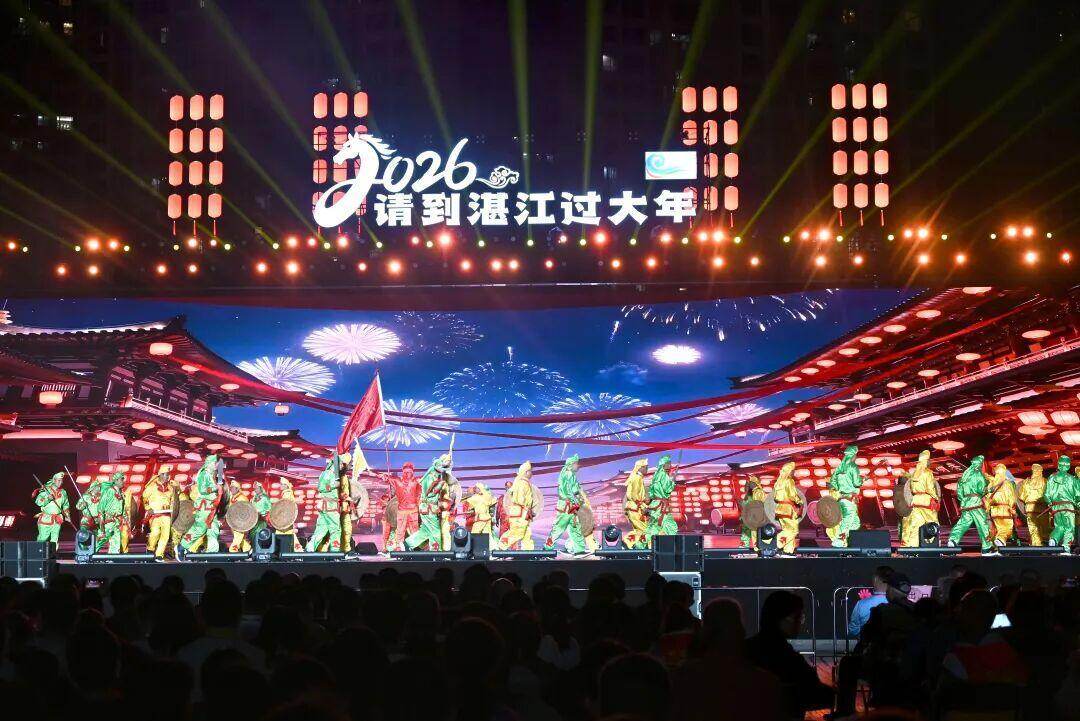 夜空下,璀璨灯火与动感鼓乐交相辉映,近千名演艺人员倾情献艺,2026架无人机点亮港城夜空,岭南非遗与现代科技完美交融,为近1.5万名市民游客带来一场年味十足、震撼人心的新春文化盛宴,生动展现了粤西非遗的活态传承与时代新生。