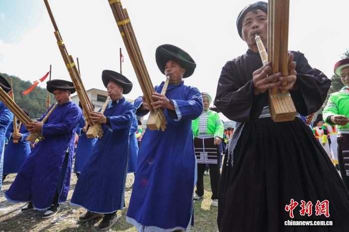 图为苗族民众在吹芦笙。中新社记者 瞿宏伦 摄