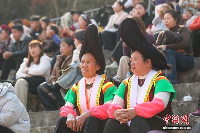 图为“跳洞”吸引当地民众观看。中新社记者 瞿宏伦 摄