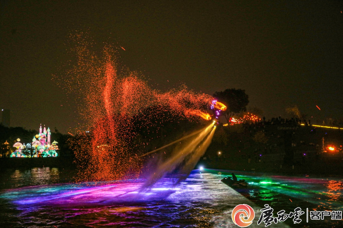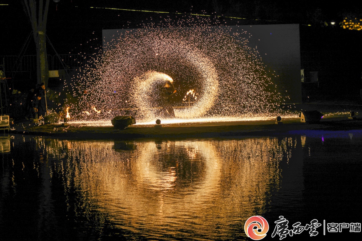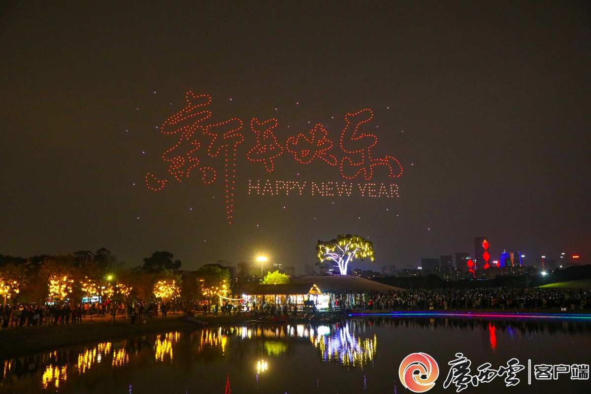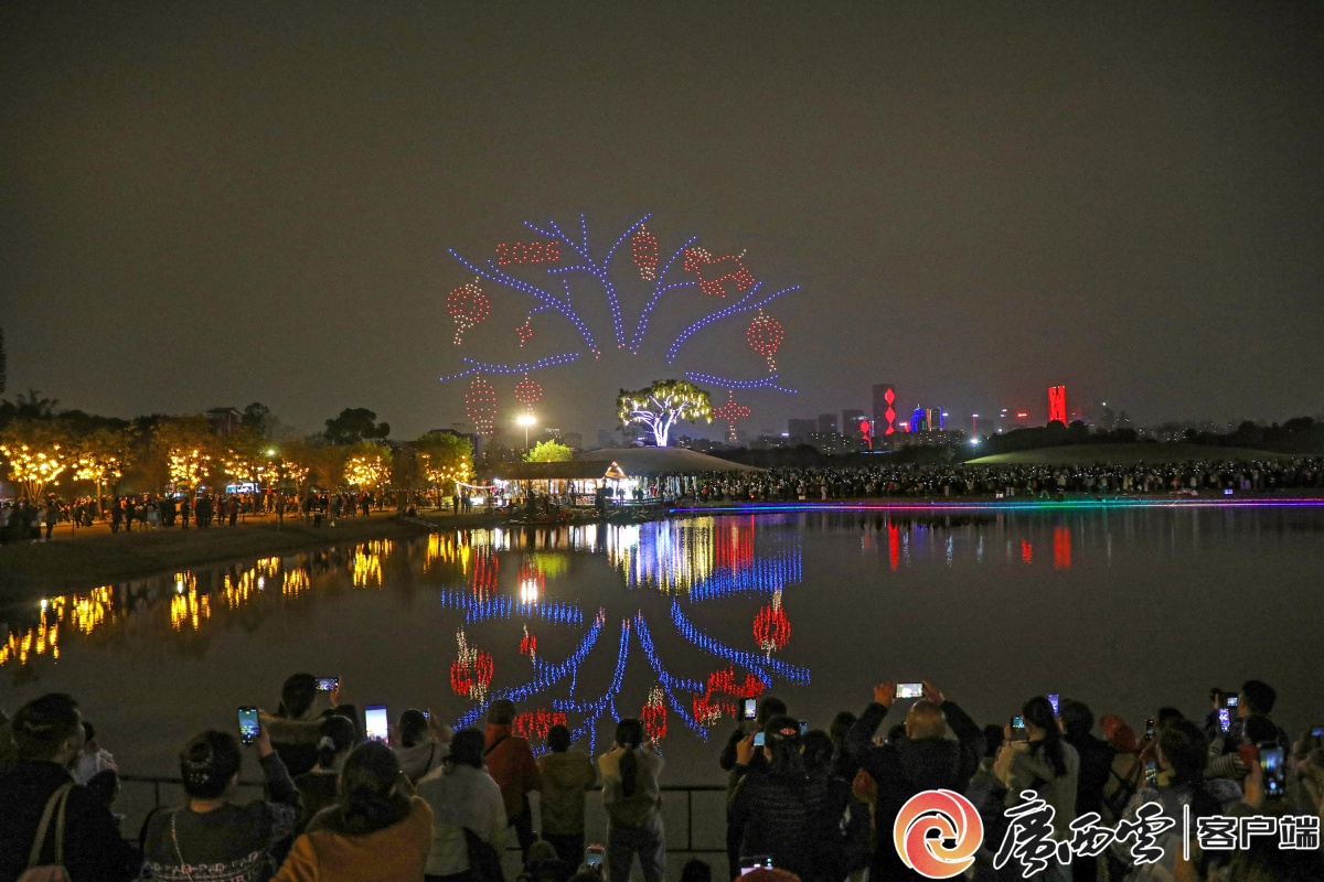 2月18日,大年初二夜,南宁市青秀山东区灯火璀璨,年味拉满。“壮美广西・灯耀南宁” 新春灯会流光溢彩,非遗打铁花腾空绽放,与水上飞天舞狮、飞天火炉共演火艺奇观;700 架无人机编队划破夜空,勾勒吉祥画卷。文艺演出轮番登场,成千上万市民游客驻足观赏、拍照留念,沉醉在传统非遗与现代科技交织的新春盛宴。