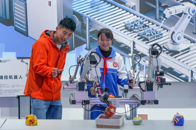 2月27日,四川省眉山市彭山区第二中学组织师生走进西南低空科教文旅基地开展“解锁低空新视界 感受AI大魅力”为主题的科技教育活动,通过观看无人机表演、与机器人互动、参观智慧社区模型、AI科普与实践体验等,为学生搭建科技探索平台,激发学生的科技兴趣,助力培养创新人才。中国教育报-中国教育新闻网通讯员 翁光建 摄