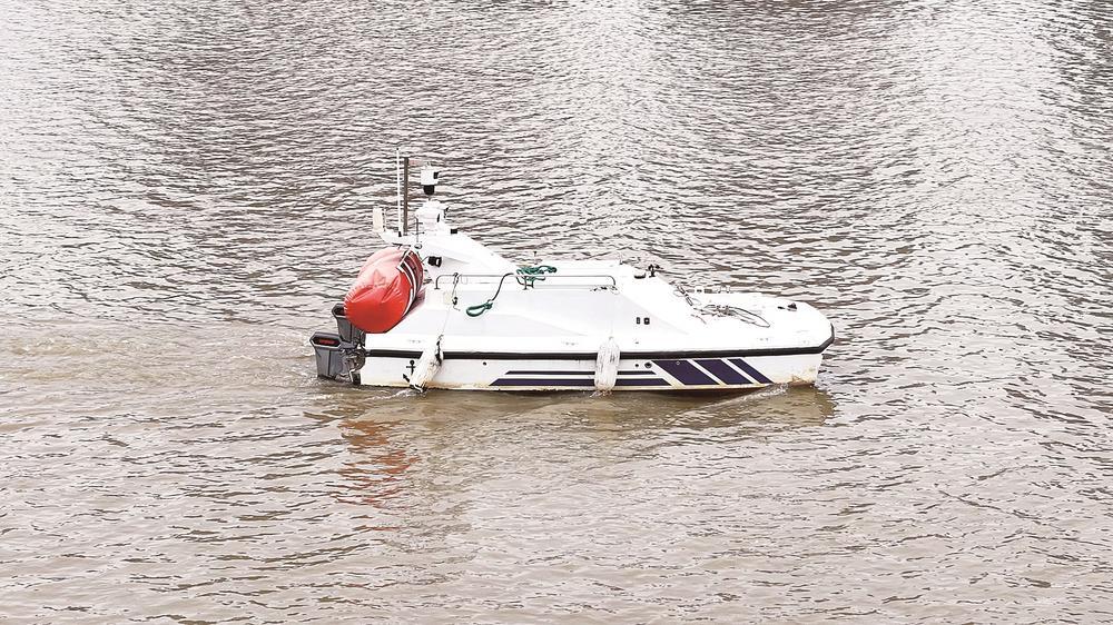 与此同时,水面的“智慧哨兵”——无人执法船也已就位。它根据指挥中心办公室预先规划的航线,进行自主巡逻。船身四周的6个高清摄像头如同敏锐的眼睛,持续扫描着水面和水下情况。当它接近违法船只时,船载高音喇叭响起清晰的警告声。这种“非接触式”喊话,既能有效制止正在发生的轻微违法行为,又能在危险或复杂情况下保障执法人员安全,彰显执法力度。