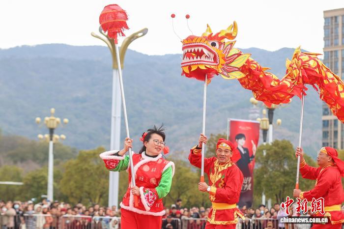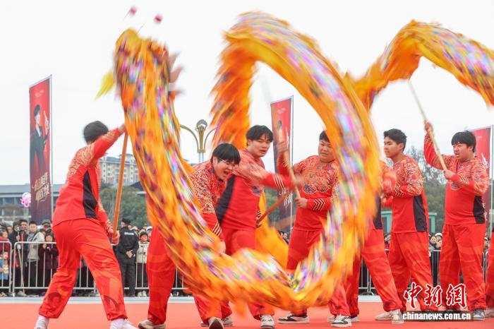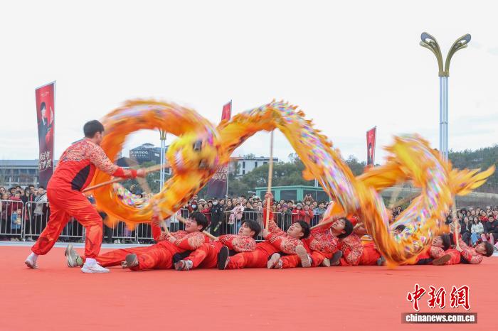 3月2日,元宵节前夕,2026年南昌市第三届龙狮邀请赛在江西南昌湾里管理局举行,来自南昌市各县(区)及邻市丰城市的十余支舞龙队伍齐聚一堂,先后登场亮相,众多民众在现场观赛。图为南昌进贤县代表队在舞龙。中新社记者 刘力鑫 摄