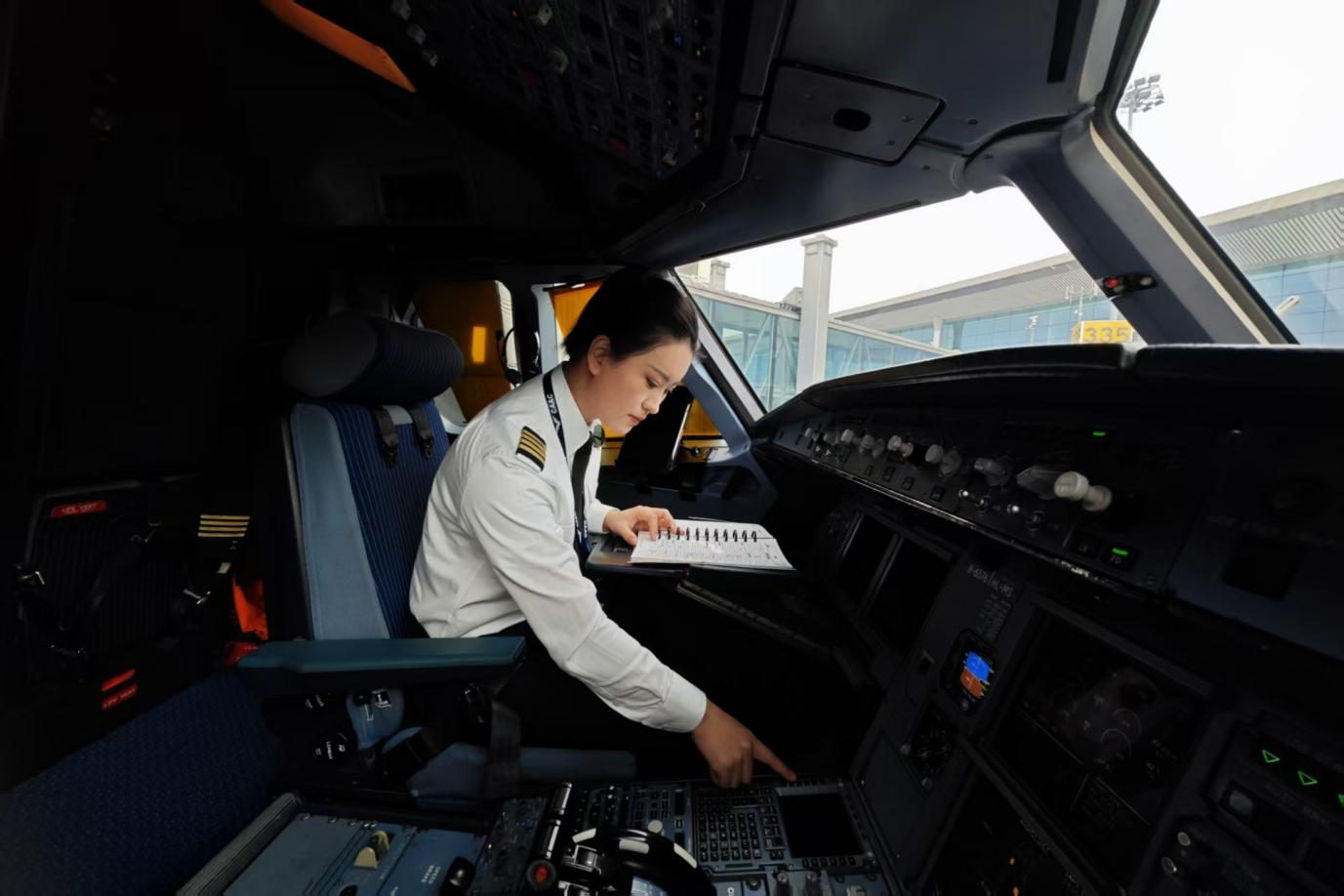 飞行前驾驶舱准备(央广网发 重庆航空供图)