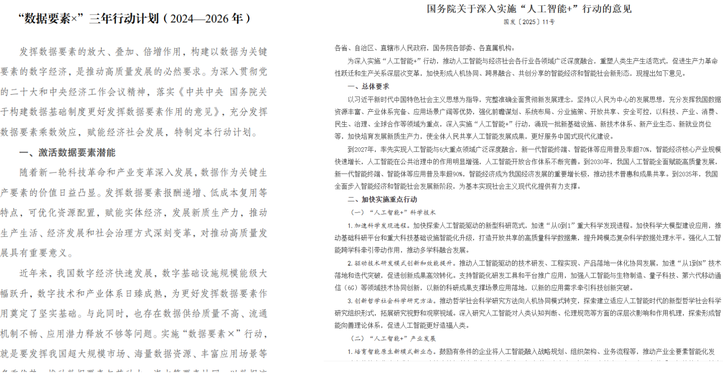 图 《数据要素×行动计划》、《“人工智能+”行动三年计划》政策文件