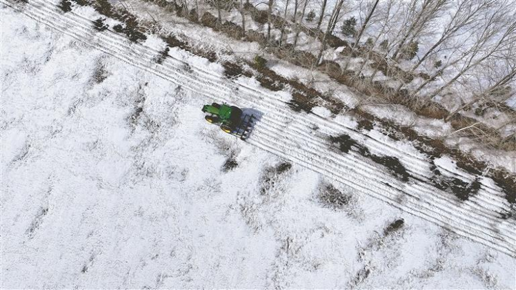 红星农场有限公司有机小麦基地开展机械化雪作业。芦长荣 步春雷摄