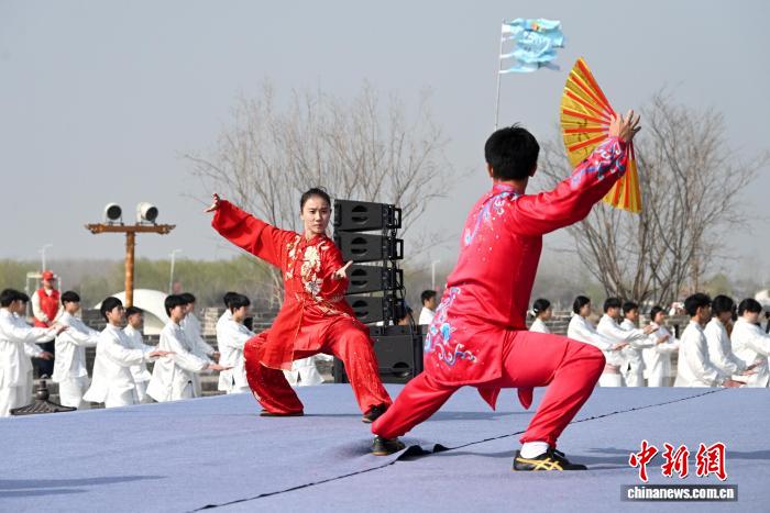 3月21日,在河北省邯郸市永年区广府古城,太极拳爱好者进行太极拳展演。 郝群英 摄