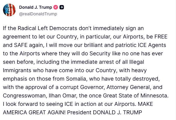 从法律层面也会有更多障碍。美国联邦法律对于移民与海关执法局的执法权限仅限于移民领域,而不涉及到机场的安保。如果派遣移民与海关执法局的人员大规模进入机场,实际上会涉嫌违宪,引发更多争议。