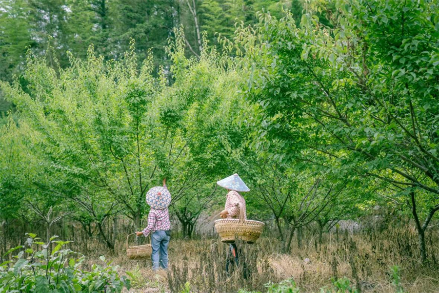 资料照片:村民在安徽省黄山市黟县西递镇源川村青梅种植基地采摘青梅(2025年5月摄)。受访单位供图