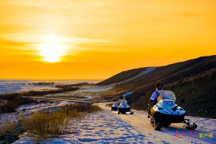 官兵驾驶雪地摩托执行巡逻任务。