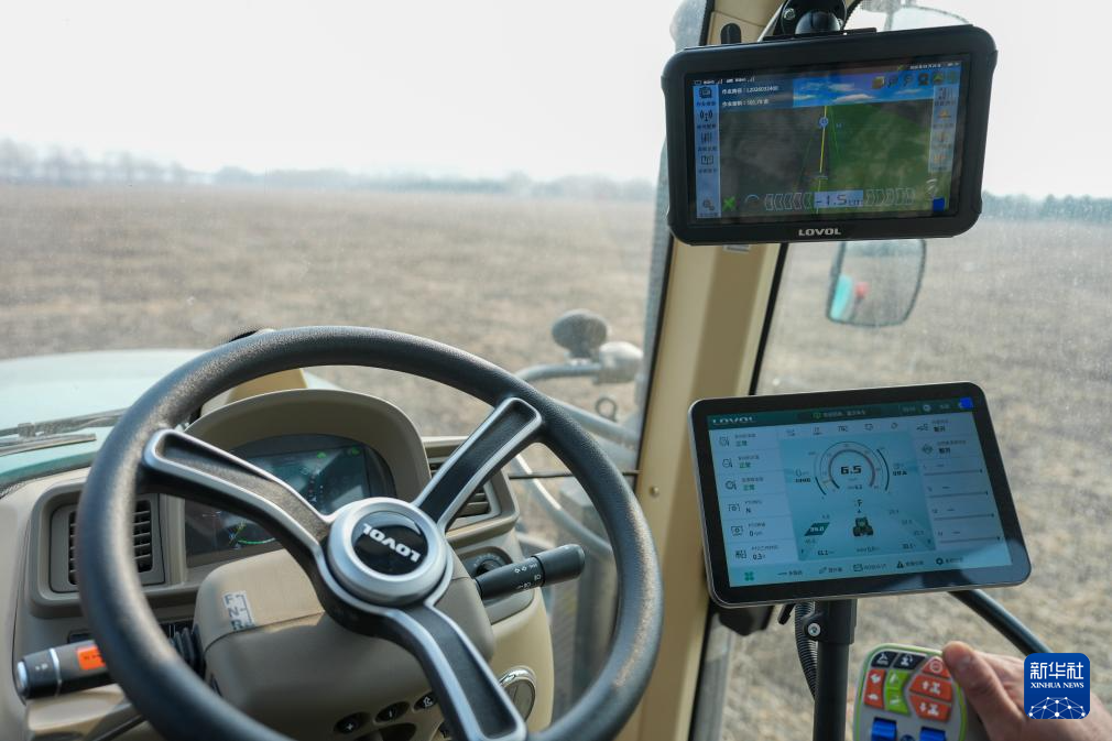 3月25日,播种机在位于黑龙江省哈尔滨市的北大荒集团闫家岗农场有限公司一处耕地上根据设定程序播种小麦。