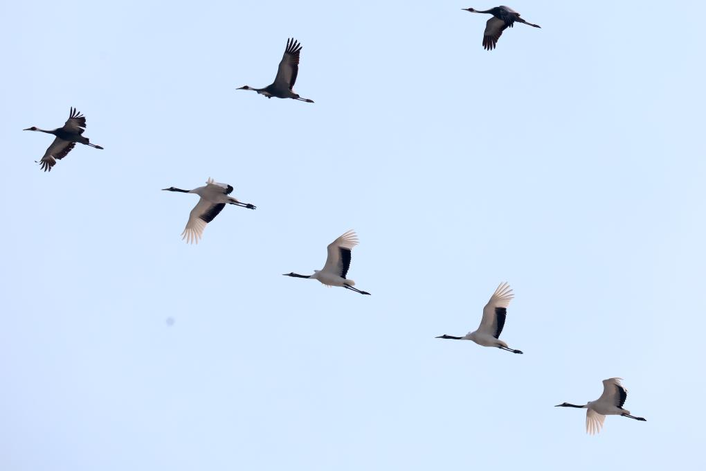 这是3月25日在黑龙江省哈尔滨市拍摄的候鸟群。新华社发(张树摄)