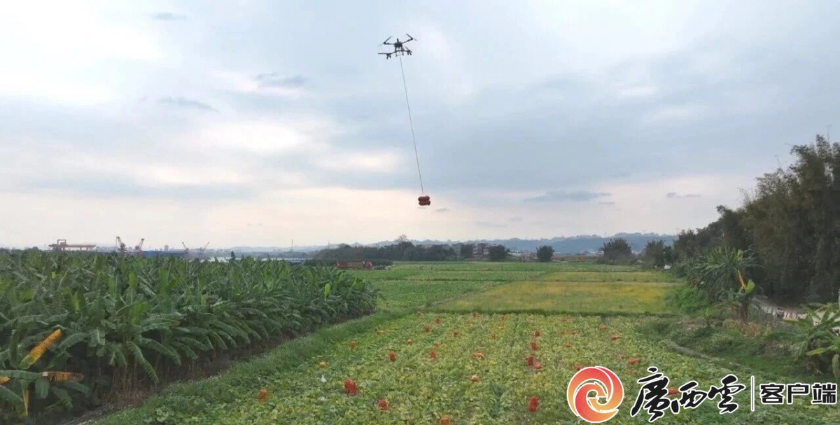 田东县祥周镇百渡村的小南瓜种植基地,无人机吊运大幅缩短流通时间。田东县融媒体中心供图