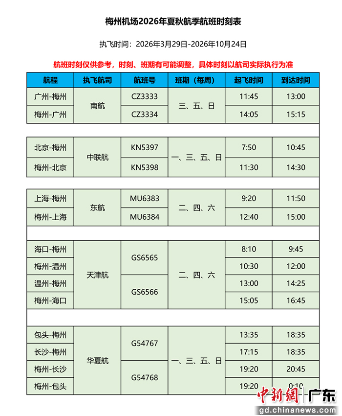 目前,在夏秋航季,梅州机场已通航北京、上海、广州、海口、温州、包头、长沙共7个城市。下一步,梅州机场公司将不断优化航线网络与服务品质,助力梅州更好地对接长三角、融入粤港澳大湾区,为梅州苏区振兴发展贡献梅州民航力量。(温竹兰 洪梓娴)