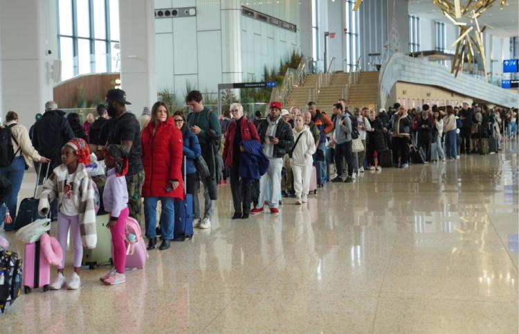 由于国土安全部“停摆”,负责机场安检的员工此前连续六周领不到工资,请假甚至辞职的人数激增,人手短缺导致机场混乱局面日益严重,全美各地机场安检排长队和航班延误情形比比皆是。