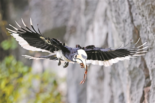 国家一级重点保护野生动物冠斑犀鸟。 (自治区林业局供图)