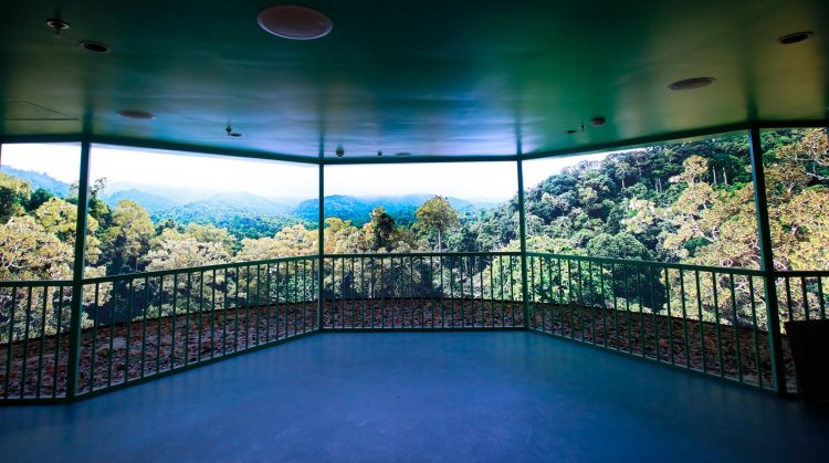 沿阶梯缓步下行,一只栩栩如生的圆鼻巨蜥模型映入眼帘,神态灵动逼真。再往前走,耳畔传来蝙蝠的声响,抬头就能看见忽明忽暗的洞穴里有黑影拂过。这里便是“魅力雨林”主题区,展区采用活体植物与仿真造景相结合的方式,还原西双版纳热带雨林原生生态,带领观众观察热带雨林里奇特的生命现象、体验专业的科考设备与雨林科学研究方法。展区内的“雨林小屋”陈列着红外相机、热感应相机、光合仪、显微镜等一线科考设备,带领观众近距离感受科研工作者的真实工作场景。