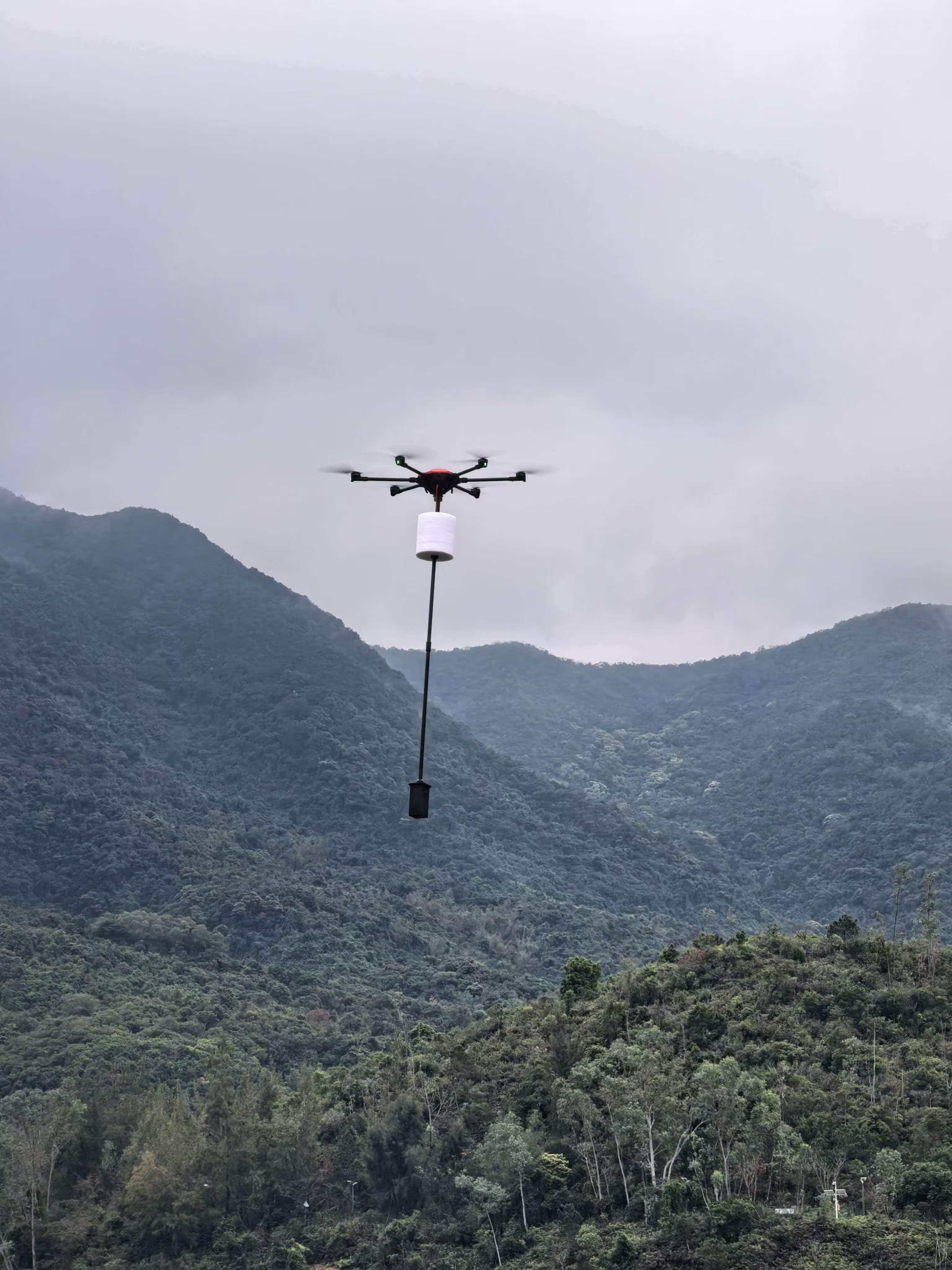 该智能飞行浮标颠覆了传统水上装备的单一介质工作模式,集成多旋翼飞行器与水面浮标平台,具备跨空气、水面双介质自由切换的作业能力。其核心优势在于兼顾了“灵活快速部署”与“长期驻留观测”的双重需求。部署时,可垂直起降、定点飞行,快速抵达数公里外的目标水域,突破船只投放的速度与条件限制。降落后可以切换至低功耗浮标模式,长时间连续开展水面及水下观测与数据采集。此外,单机可实现“区域巡检-定点详查-通信中继”的组合任务,相关功能高度集成。