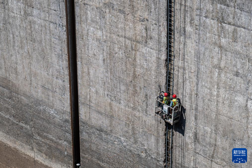 4月1日拍摄的葛洲坝二号船闸停航检修现场(无人机照片)。新华社记者 伍志尊 摄
