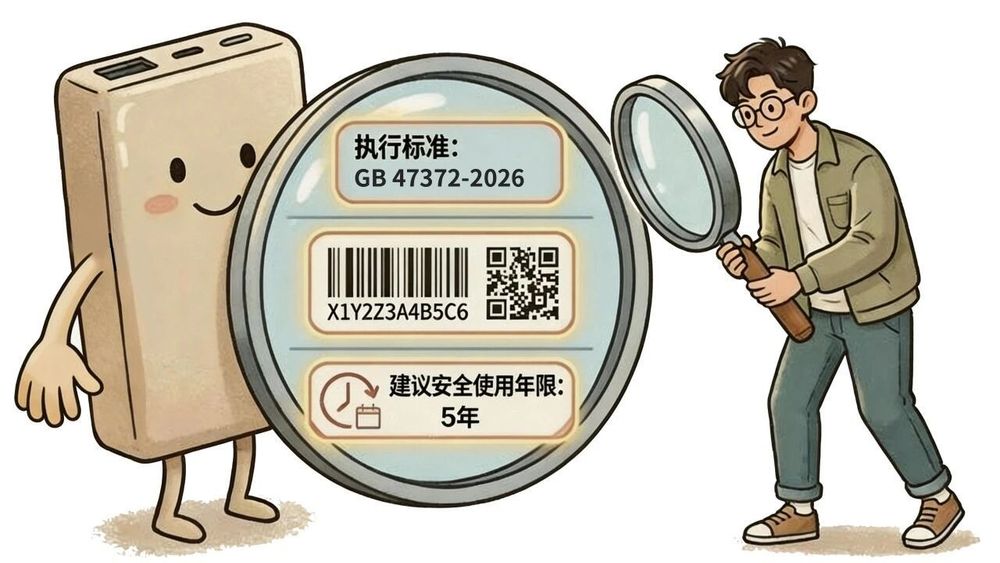 今天,强制性国家标准GB47372-2026《移动电源安全技术规范》公开发布,将于2027年4月1日实施,设置了12个月过渡期。在原有的两项通用强制性国家标准要求的基础上明确了多项关键要求。