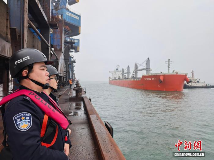 中新网福州4月3日电 (记者 闫旭 通讯员 张顺福)4月3日12时,从秘鲁驶来的巴拿马籍“春天”轮,载运6万余吨铁矿,在福州机场边检站执勤一队民警的安全监护下,缓缓靠泊福州松下港区,随即展开装卸作业。