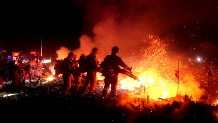 “嘟嘟嘟――”,急促的紧急集合声划破夜空,指战员迅速穿戴防护装具、装载灭火装备,集结登车奔赴“火场”。抵达现场后,无人机立即升空侦察,精准传回火场地形、火势蔓延方向等关键信息,指挥员快速研判态势,划分作战区域,明确战术战法。夜色中,火光与灯光交织,指战员分工协作、默契配合,全力遏制火势蔓延。