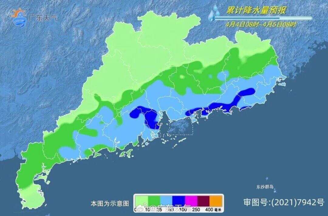 3日-4日,广东省中北部市县有大雨局部(大)暴雨,南部市县有中雷雨局部(大)暴雨,大部分市县雷雨时伴有8~10级(局地11级)短时大风、短时强降水和局地小冰雹;