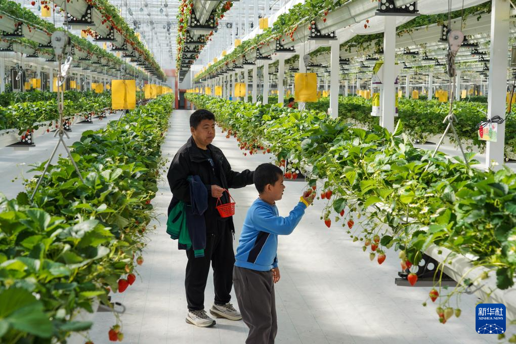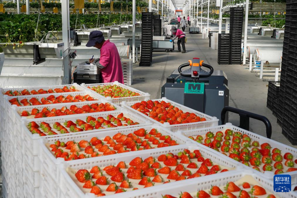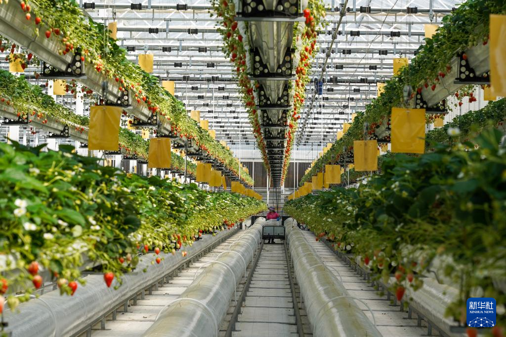 近年来,位于山东省滕州市姜屯镇的信华新格林高效现代农业产业园以科技赋能草莓产业,带动周边村民就业,助力增收。8万平方米单体空中草莓温室内,悬挂式无土栽培槽搭配智能温控、水肥一体化及补光系统,助力产业园实现全年稳定产果。新华社记者 朱峥 摄