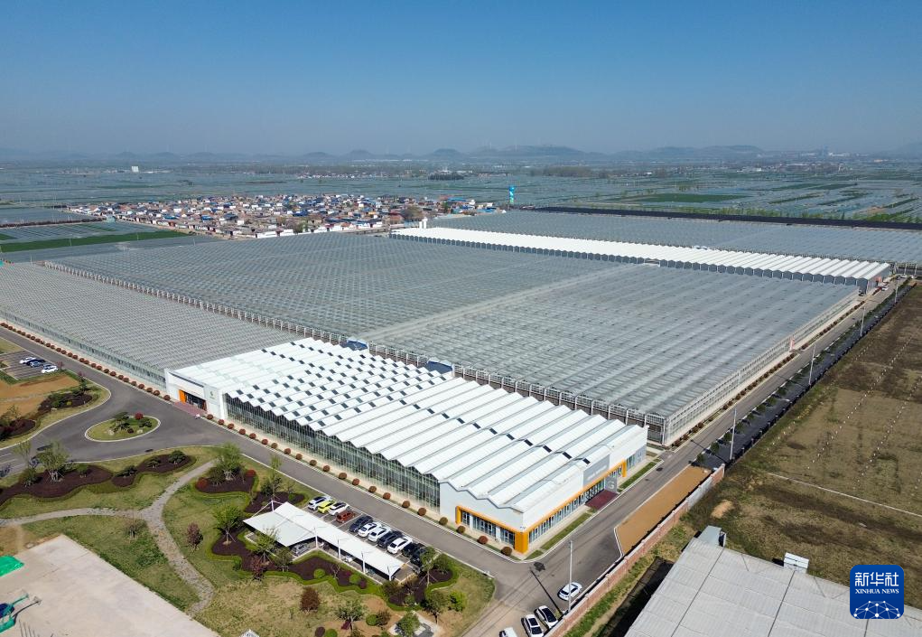 这是4月4日拍摄的8万平方米单体空中草莓温室(无人机照片)。