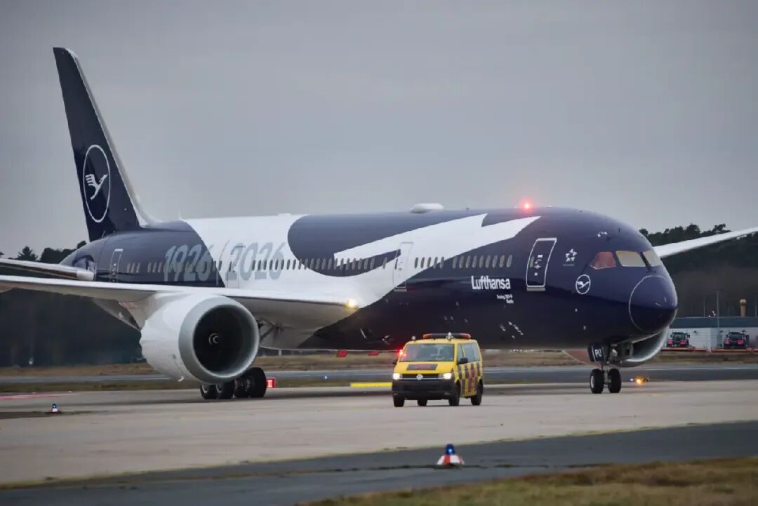 rnt波音787-9梦想客机(注册号 D-ABPU,命名为“柏林”号),采用“Super Crane”特别百年纪念涂装。该机从法兰克福飞抵柏林,随后执飞纪念航班LH1926前往苏黎世,复刻1926年柏林-苏黎世航线。rn