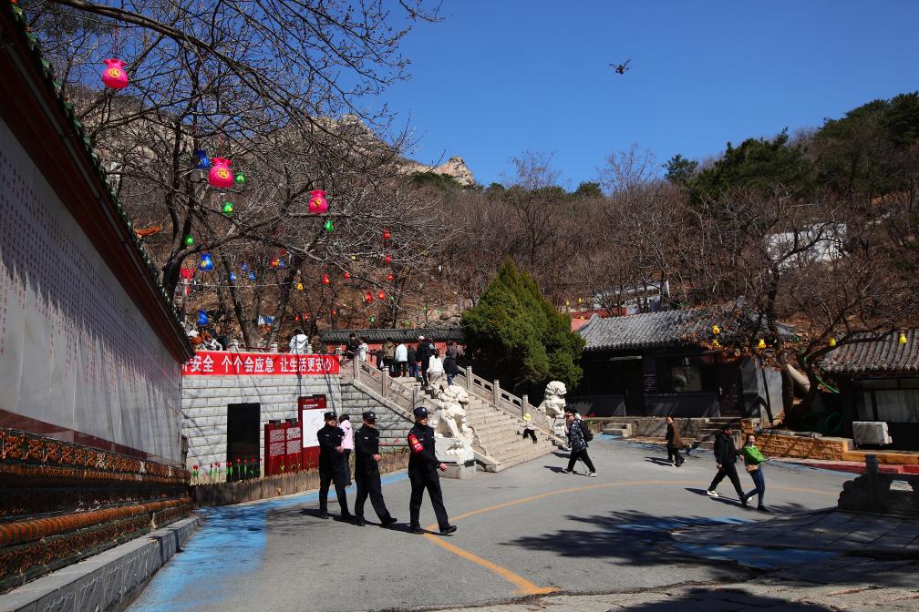 青岩寺景区山高路窄、游客密集,警务驿站构建起“空中+地面”“科技+人力”的立体化安全防护体系,实现景区治理升级。