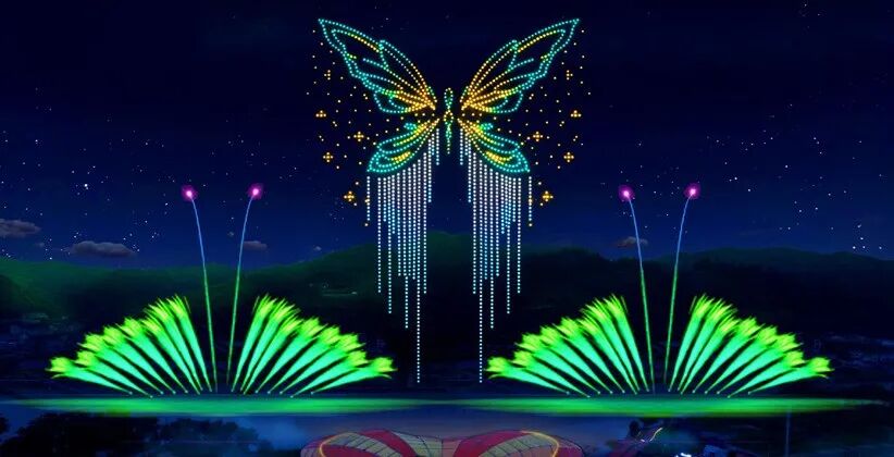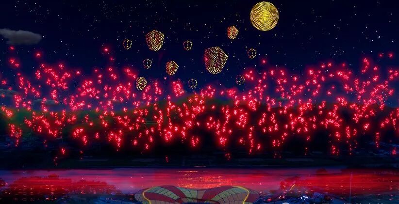 焰火与无人机光影交织