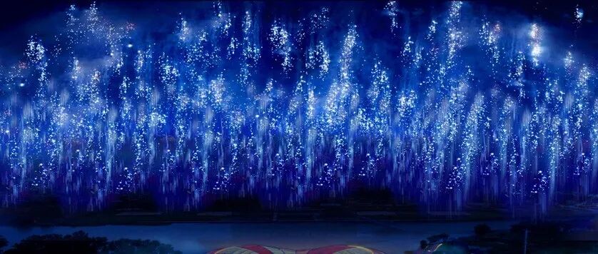 漫天蓝色烟花划破夜空