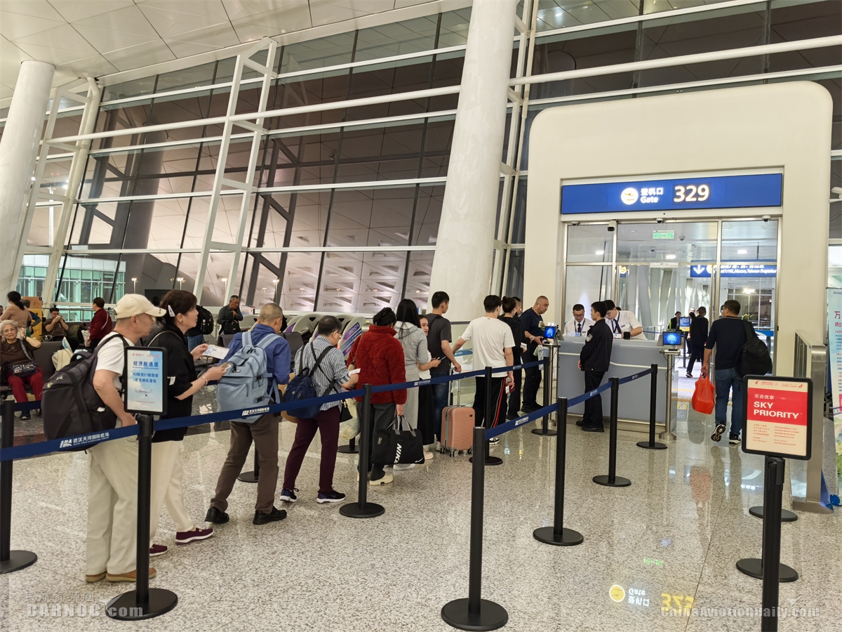 其中一个由77人组成的赴老挝旅行团格外热闹。来自武汉某旅行社的吴领队笑着说:“以前带团去老挝,一般从昆明转机,路上折腾大半天。现在武汉直飞,三个小时就到万象,客人舒服,我们也好安排行程。”他介绍道,这个团以中老年游客为主,大部分是第一次去老挝,对万象、琅勃拉邦的佛教文化和自然风光充满期待。登机口前,团员们纷纷举起首航纪念立牌合影,笑声不断。