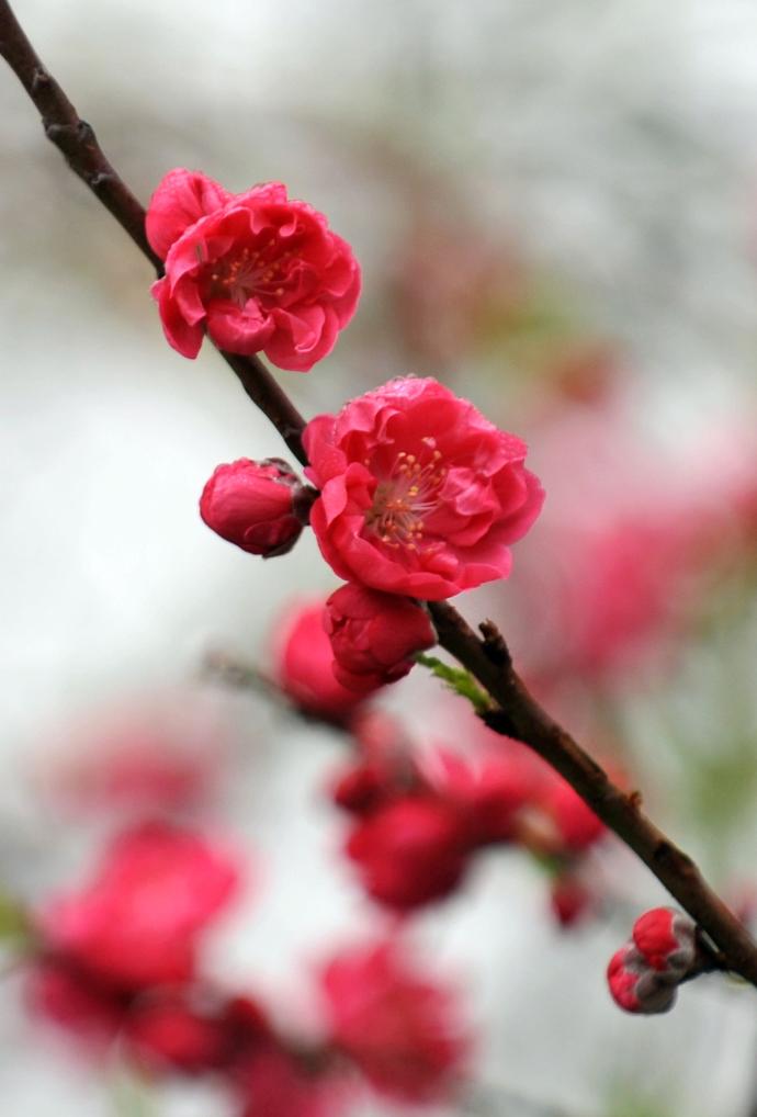 “春风先发苑中梅,樱杏桃梨次第开”的入春景象时