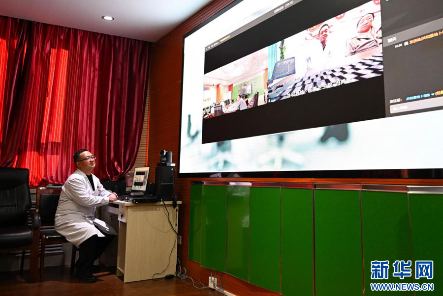 2024年12月17日,在青海省海南藏族自治州共和县中医院,医生穆连财在与乡镇卫生院连线进行远程会诊。(新华社记者 张龙 摄)