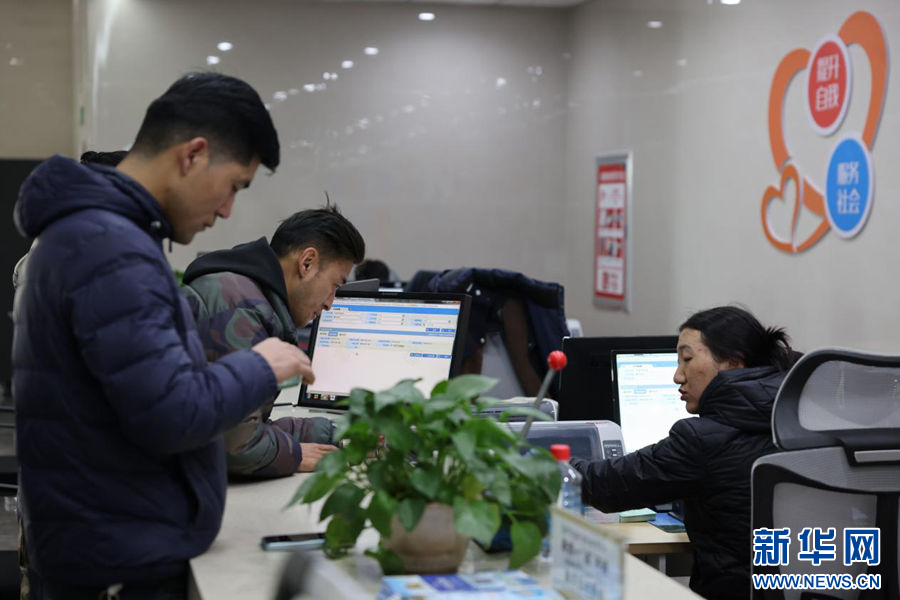 1月16日,在共和市民服务中心大厅,工作人员在为群众办理业务。(新华社记者 李宁 摄)