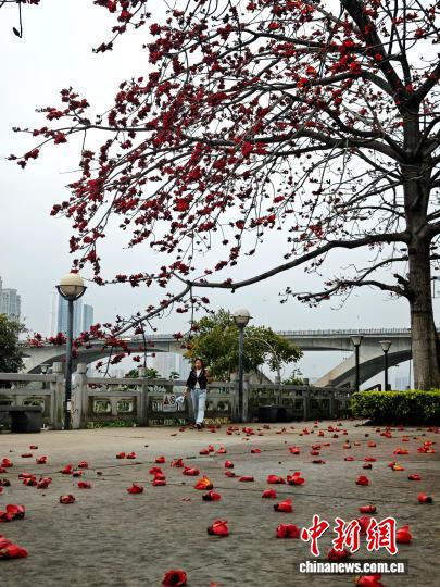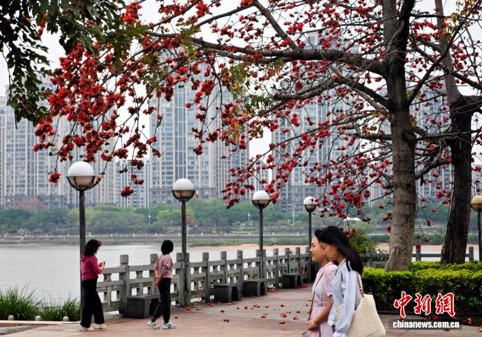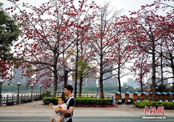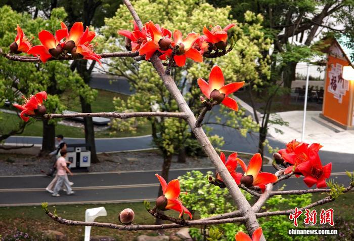 4月15日,福州闽江公园内木棉花竞相绽放。连日来,福州公园、街道种植的木棉树相继迎来盛花期,为城市增添了一抹绚丽色彩。中新社记者 吕明 摄