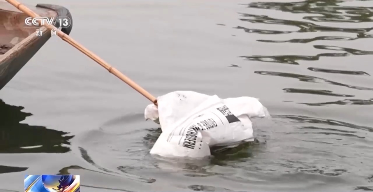 确认问题后,清洁队随即展开现场打捞作业。就在漂浮物清理过程中,记者遇到了正在沿线巡河的河道专管员。虽然有了AI预警,但人工巡查依然是河道治理的重要一环。
