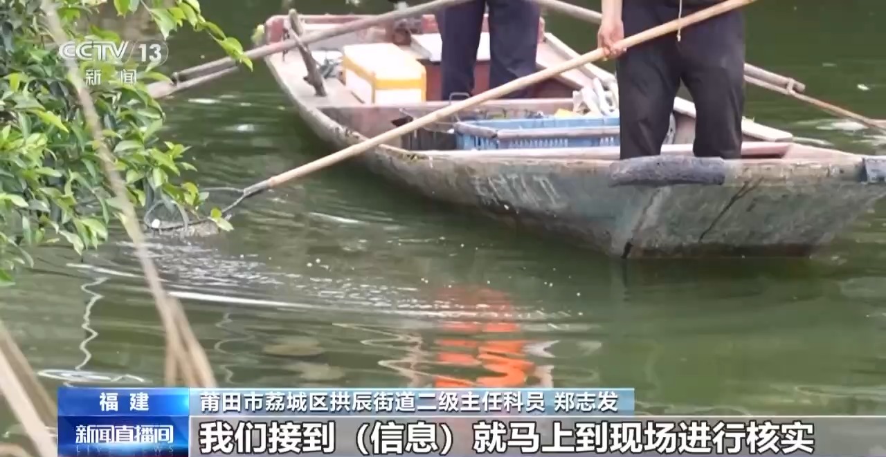 莆田市荔城区拱辰街道二级主任科员 郑志发:这是我们通过APP系统接收到的河边预警信息,我们接到信息就马上到现场进行核实,确实存在泡沫、生活垃圾。我们就及时叫环保专员过来清理干净。