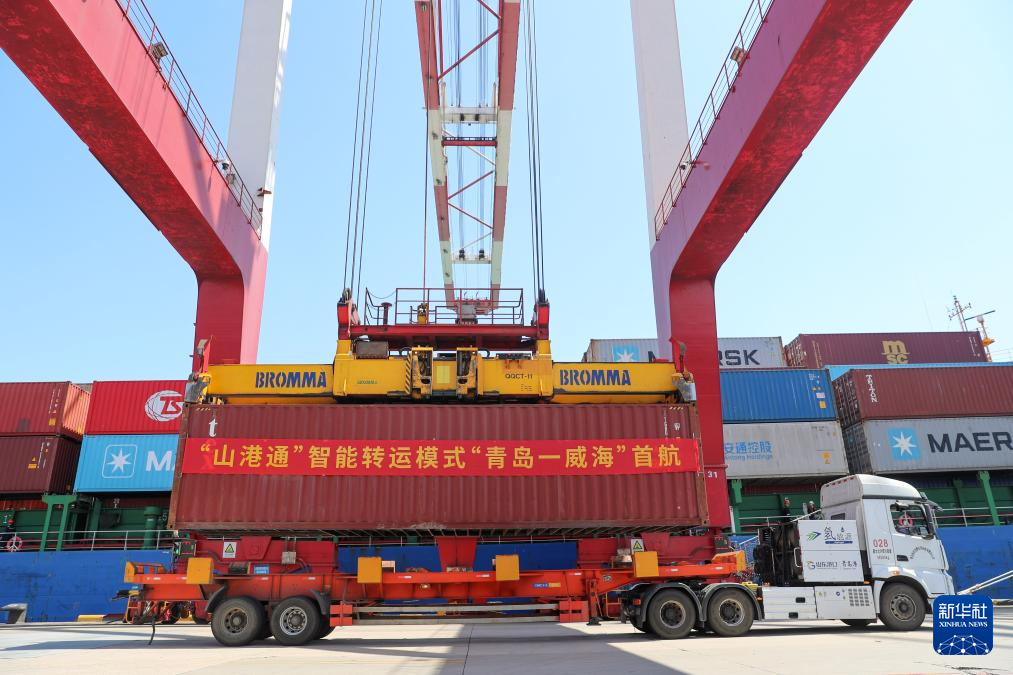 “山港通”智能转运模式由青岛海关创新推出,通过“枢纽港+支线港”的组合运营机制,实现货物在港口间的智能调拨运输,货物可“一次申报、一次查验、一次放行”,有效简化通关流程,降低运营成本。