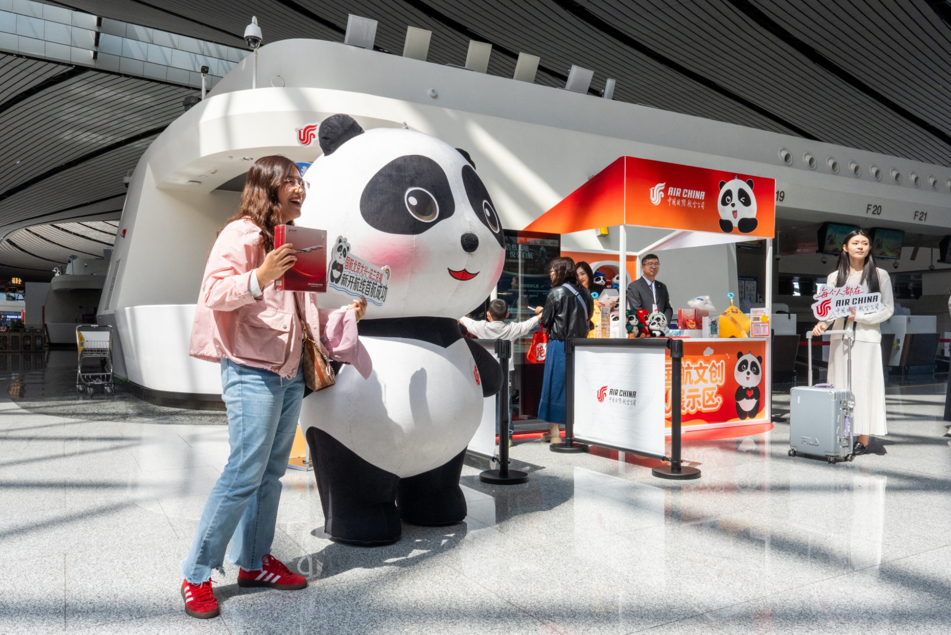 图:旅客在国航文创展示区驻足留念。汪洋摄