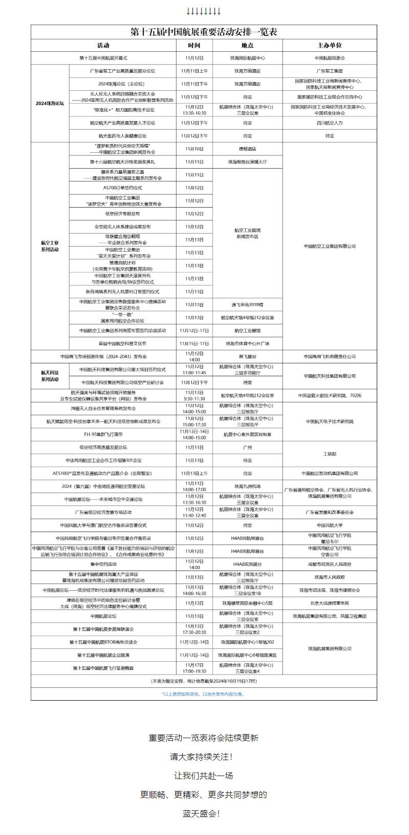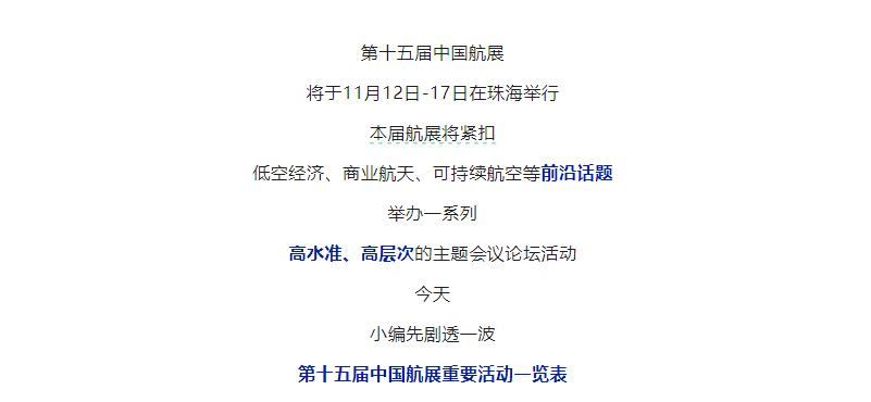 第十五届中国航展重要活动一览表