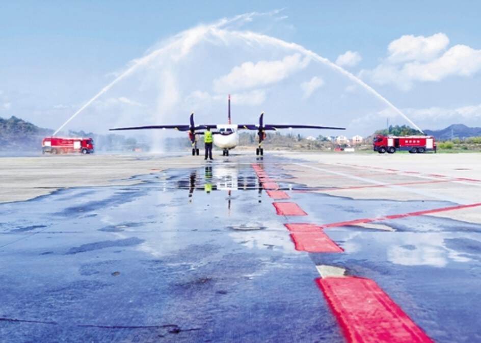 随着国家应急管理部一架新舟60型灭火飞机平稳降落,机场以民航最高礼遇“水门礼”迎接,现场气氛被推向高潮。新舟60型灭火飞机是我国航空应急救援领域的核心装备,也是国内首款按照CCAR-25部适航标准正向研制的大中型固定翼应急救援飞机,技术实力处于国内领先水平,目前全国仅部署2架,肩负着重大应急救援使命。