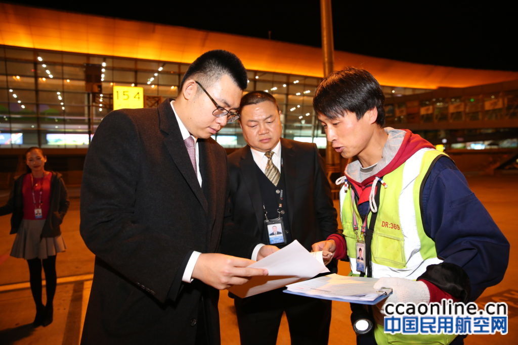 “春节好!辛苦了!”随着瑞丽航空鸡年最后一班航班平稳降落,以航班正点率100%的好成绩结束了鸡年的安全运行。董世杰总裁带队,马占炜董事长携公司领导一行向公司AOC值班员工、执飞航班机组及其他一线员工送上了新年祝福及感谢,共同见证瑞丽航空圆满实现安全运行一整年的这一刻。